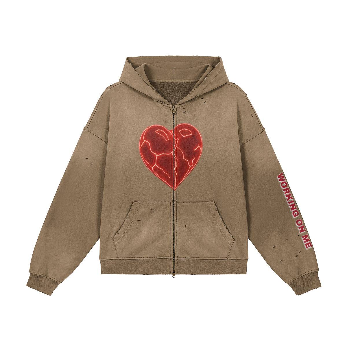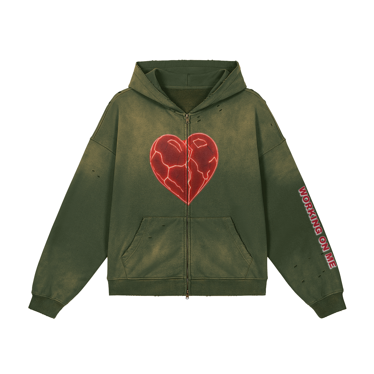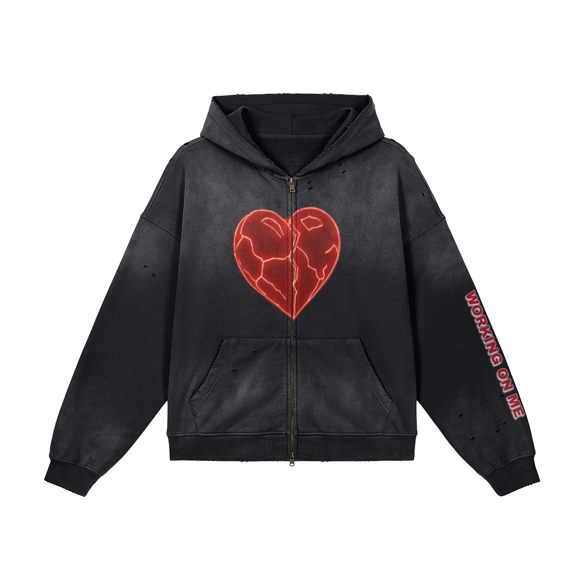 Crafted in 100% cotton, this unisex sun-faded distressed full-zip hoodie channels a vintage streetwear vibe. The sprayed fade wash and subtle worn-in details create a grunge-inspired look, perfect for oversized layering, casual outfits, or statement street style that blends comfort with a bold, lived-in edge.